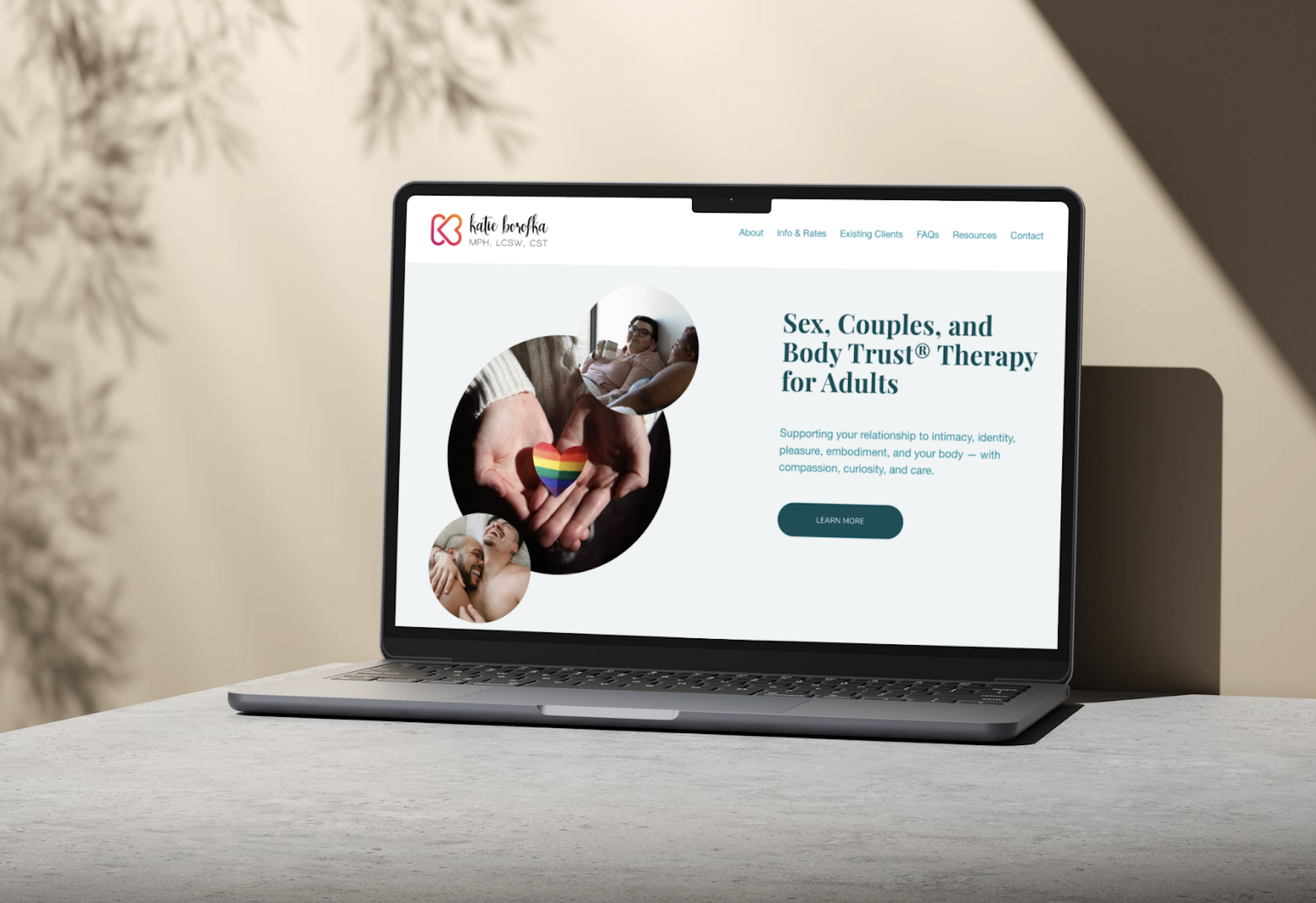 Katie Borofka had a dated website that did not reflect who she is or how she works. The homepage contained a generic rainbow heart image and copy that didn’t clearly communicate the kinds of people she worked with or the type of therapy she offers. The language wasn’t persuasive or client-focused. The About page was especially overwhelming, with a long block of text that was hard to navigate.
