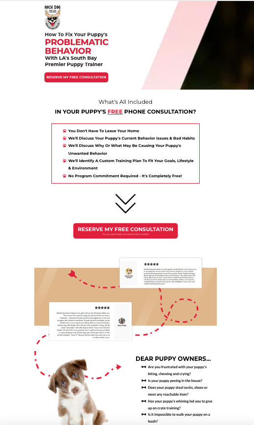 Rockdog CA is a dog training and boarding business run by a trainer who had recently moved to Los Angeles and needed to establish herself in a very crowded local market. She had a logo, but no real branding or strategy. Her old website was messy, hard to navigate, and wasn’t bringing in leads. On top of that, she was paying a high monthly fee to a third-party company to run her Google Ads, but the results weren’t great.